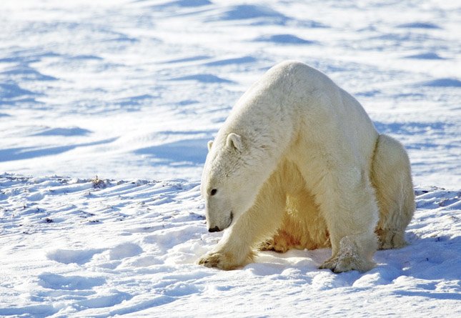 A polar bear spends months wandering across the frozen surface of the Arctic seas, looking for food. Often it catches a ride on an ice floe and snatches seals when they pop out of the water. Polar bears eat walruses, small mammals, birds, and fish, too. But their favorite food is Seals because of their rich blubber. Polar bears will actually wait for hours by a seal’s breathing hole to catch one.